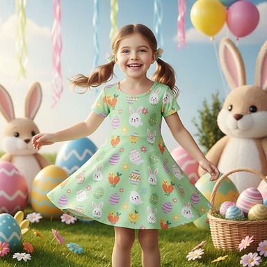 Pääsiäinen Tyttöjen 3D Kuvitettu Kani Mekko Lyhythihainen 3D-tulostus Kesä Kevät Päivittäin Loma Juhla söpö tyyli Perus Vapaa-aika Lapset 4-12 vuotta Rento mekko A linjainen mekko Polvipituinen