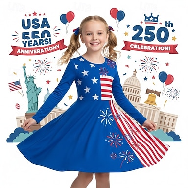 Tyttöjen 3D Kuvitettu Lippu Mekko Lyhythihainen 3D-tulostus Kesä Kevät Päivittäin Loma Juhla söpö tyyli Perus Vapaa-aika Lapset 4-12 vuotta Rento mekko A linjainen mekko Polvipituinen Normaali
