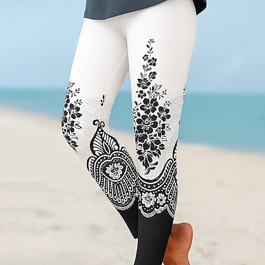 Naisten Leggingsit Loma Vintage Muoti Nilkkapituinen Korka vyötärö Kukka Kuvitettu Lehti Tulostus Pidä lämpimänä Pehmeä Hengittävä Elastinen Loma Katu Musta Rubiini Laivaston sininen Sininen Kevät