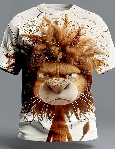 miesten t-paita tee eläin leijona pyöreä kaula custom print 3d print ulkona katu lyhythihainen print vaatteet vaatteet urheilu muoti urheiluvaatteet rento