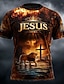 Miesten pääsiäispaita, Jeesus, Juudan leijona, risti, tuli, voimakas, kristillinen, uskonnollinen, kauttaaltaan painettu, lyhythihainen, pyöreä pääntie, kirkko, lahjaidea, suunnittelijavaatteet,