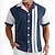 Miesten Geometrinen Raidoitettu Paita Keilailupaita Leirin paita Lyhythihainen Muoti rento Katuvaatteet Loma Kesä Kevät Kuubalainen kaulus 3D-tulostus Napitettavat paidat Sininen Musta Viininpunainen