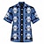 Miesten Geometrinen printti Etninen Aurinkototeemi Paita Button Up paita Leirin paita Lyhythihainen Vintage retro Katuvaatteet Loma Kesä Kevät Kuubalainen kaulus 3D-tulostus Sininen Punastuvan