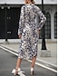 naisten vapaa-ajan mekko etninen mekko vaihtomekko midi mekko leopardi musta valkoinen puolihihainen kukkaprintti kesä kevät v kaula perus päivittäinen loma viikonloppu 2023 s m l xl xxl 3xl