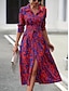 Naisten Polvipituinen mekko Rento mekko Kukka mekko Tyylikäs Muoti Moderni ulko- Loma Bile Normaali Kukka Leopardi Lyhythihainen V kaula-aukko Sininen Punastuvan vaaleanpunainen Purppura Ruskea Kes