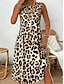 Naisten Polvipituinen mekko A linjainen mekko Loma Vapaa-aika Rantatyyliä Hiekkaranta Pyhäpäivä Loose Fit Kuvitettu Leopardi Hihaton U kaula-aukko Sininen Musta Ruskea Kesä Kevät