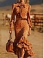 Naisten Midimekko Boho-mekko Rento mekko Peplum Mekot Tyylikäs Muoti Moderni ulko- Loma Juhla Normaali Leopardi Pitkähihainen Lace Up Neck Oranssi Kevät Syksy