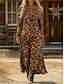 Naisten Maksimekko Vintage mekko Rento mekko Vintage Päivittäin ulko- Loma Normaali Leopardi Pitkähihainen V kaula-aukko Ruskea Kevät Syksy