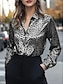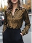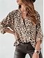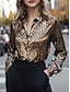 Naisten Pusero Napit Painettu Leopardi Vintage Vapaa-aika Pitkähihainen Paitapuserokaula-aukko Tavalliset topit Päivittäin Hopea Keltainen Aprikoosi Kevät Syksy
