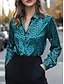 Naisten Pusero Napit Painettu Leopardi Tyylikäs Vapaa-aika Pitkähihainen Paitapuserokaula-aukko Tavalliset topit Päivittäin Sininen Hopea Keltainen Ruskea Kevät Syksy