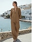 Naisten Puuvillaset liinavaatteet Housusarjat Pitkähihainen V kaula-aukko Yhtenäinen väri Muoti Katutyyli Kausaliteetti Päivittäin ulko- Sininen Valkoinen Ruskea Kesä Loose Fit