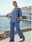 Naisten Paita Puuvillaset liinavaatteet Kaksiosaiset setit Pellavahousut Lyhythihainen Yhtenäinen väri Sininen Laivaston sininen Harmaa Kesä Normaali