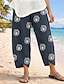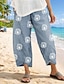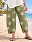 Naisten pellavamaista kangasta olevat housut lököhousut lomailu perus rento päivittäinen nilkkapituiset keskitason vyötärö kukkakuvio naru sivutaskut printti mukavuus hengittävyys mukauttamaton