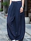 Naisten 70% pellavaa sisältävät lahkeet, chinot, bloomers, loma, arkityyli, täyspitkä, keskikorkea vyötärö, yksiväriset, kiristysnyöri, mukavat ja joustavat housut, ulkokäyttöön, arkikäyttöön, sininen, violetti, vihreä, syksy, talvi, löysä istuvuus.