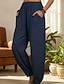 Naisten 70% pellavaa sisältävät täyspitkät pellavahousut, leveälahkeiset chinotet, lomahousut, streetwear, rento, täyspitkä, keskikorkea vyötärö, yksivärinen, joustava vyötärönauha, mukavat, mikrojoustava, päivittäiseen käyttöön, ulkoiluun, streetwear, va