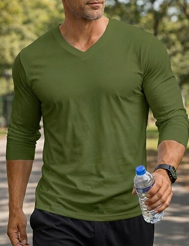 Miesten T-paita Pitkähihainen paita Pitkähihainen V kaula-aukko 봄 & Syksy Tavallinen Muoti Suunnittelija Vapaa-aika Katu Urheilu Pyhäpäivä Valkoinen Sininen Khaki Top T-paita miehille