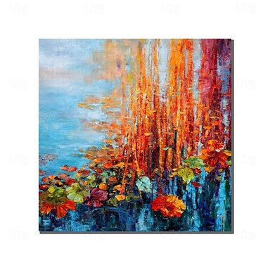 öljymaalaus käsintehty käsinmaalattu neliö seinä taide vaikutelma lummet kankaalle maalaus kodin sisustus sisustus ilman kehystä maalaus olny