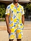 Miesten Hedelmä 2kpl Paidat Setit Paita Lyhythihainen Lyhyet housut Kuubalainen kaulus Loma Kausaliteetti Päivittäin Juhla 3D-tulostus Kesä Keltainen