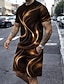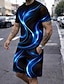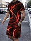 Miesten Geometrinen Viiva 2kpl T-paidat setit Kesän yläosat Lyhythihainen Lyhyet housut Tiukka pyöreä kaula-aukko Vapaa-aika muodikas Päivittäin ulko- Loma 3D-tulostus Kesä Sininen Rubiini Ruskea