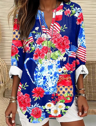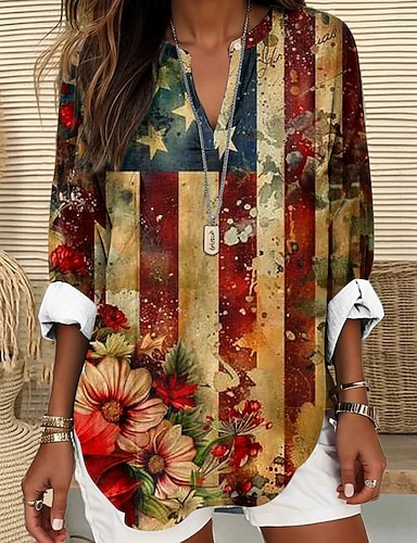 itsenäisyyspäivän patrioottinen naisten T-paita graafinen lippu vintage tyylikäs klassinen lyhythihainen V-kaula-aukko säännölliset hupparit päivittäin viikonloppu painatus musta sininen vihreä