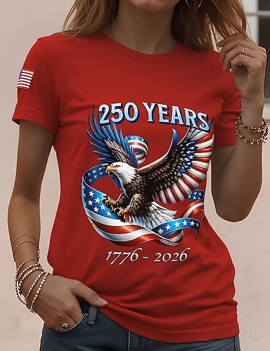 itsenäisyyspäivän patrioottinen naisten T-paita graafinen lippu vintage muoti tyylikäs lyhythihainen pyöreäkauluksinen säännölliset hupparit päivittäin viikonloppu värikäs painatus punainen sininen