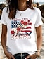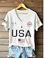 itsenäisyyspäivän patrioottinen naisten T-paita painatus graafinen lippu kirjain tyylikäs klassinen rento lyhythihainen pyöreäkauluksinen säännölliset hupparit päivittäin musta valkoinen kesä kevät
