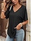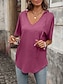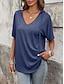 Naisten puuvilla-pellavablussi graafinen elegantti vintage tyylikkäät lyhyet hihat V-pääntie säännölliset hupparit päivittäinen loma napit sininen harmaa kesä kevät