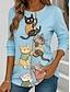 Naisten T-paita Painettu Kuvitettu Eläin Kissa Muoti Tyylikäs Vapaa-aika Pitkähihainen Tiukka pyöreä kaula-aukko Tavalliset topit Päivittäin Viikonloppu Sininen Kesä Kevät Syksy