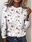 Naisten T-paita Painettu Kukka Kuvitettu Kissa Muoti Tyylikäs Klassinen Pitkähihainen Tiukka pyöreä kaula-aukko Pyöreä kaula-aukko Tavalliset topit Päivittäin Kastanjanruskea Valkoinen Punastuvan