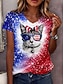 Amerikan itsenäisyyspäivä Naisten T-paita Painettu Ombre Kuvitettu Kissa Vintage Tyylikäs Klassinen Lyhythihainen V kaula-aukko Tavalliset topit Päivittäin Sininen Kesä Kevät