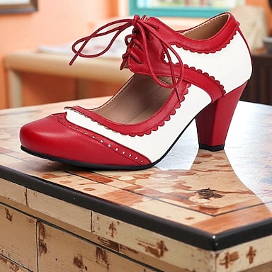 Naisten 1950-luvun mustavalkoiset oxford-brogue-kengät, joissa nauhat ja matala korko - retro Oktoberfest-jalkineet vapaa-aikaan, töihin ja cosplay-asuihin