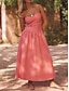 Naisten Midimekko Väljä mekko Kesämekko Rento mekko Puuvillamekko Tyylikäs Muoti Moderni ulko- Loma Bile Normaali Tavallinen Hihaton hihnat Punastuvan vaaleanpunainen Kesä Kevät