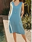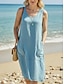Naisten Polvipituinen mekko Boho-mekko Puuvillaiset pellavamekot Väljä mekko Kesämekko Muoti Klassinen Moderni ulko- Loma Bile Normaali Tavallinen Hihaton Tiukka pyöreä kaula-aukko Vaalean sininen