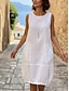 Naisten Minimekko Cotton Blend Rento mekko Puuvillamekko A linjainen mekko Muoti Moderni Päivittäin Loma Bile Loose Fit Tavallinen Hihaton V kaula-aukko Sininen Valkoinen Keltainen Punastuvan