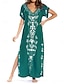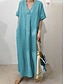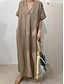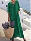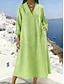 Naisten Maksimekko Kaftaanimekko Puuvillaiset pellavamekot Rento mekko Puuvillamekko Perus Klassinen Vapaa-aika Päivittäin ulko- Loma Loose Fit Tavallinen Pitkähihainen V kaula-aukko Armeijan vihre