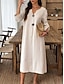 Naisten Midimekko Cotton Blend Väljä mekko Puuvillamekko Tyylikäs Muoti Moderni Päivittäin ulko- Loma Loose Fit Tavallinen Pitkähihainen Tiukka pyöreä kaula-aukko Valkoinen Vaalean vihreä Punastuvan