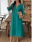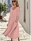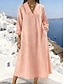 Naisten Midimekko Cotton Blend Väljä mekko Rento mekko Puuvillamekko Muoti Moderni Päivittäin Viikonloppu Loose Fit Tavallinen Pitkähihainen V kaula-aukko Sininen Punastuvan vaaleanpunainen Apila