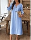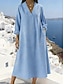Naisten Maksimekko Paitamekko Puuvillaiset pellavamekot Rento mekko Puuvillamekko Perus Klassinen Vapaa-aika Päivittäin ulko- Loma Loose Fit Tavallinen Pitkähihainen Paitapuserokaula-aukko Sininen