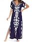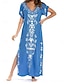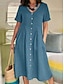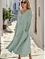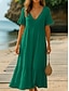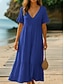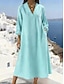 Naisten Midimekko Cotton Blend Rento mekko Puuvillamekko A linjainen mekko Muoti Moderni Päivittäin Hiekkaranta Loma Loose Fit Tavallinen Lyhythihainen V kaula-aukko Sininen Valkoinen Oranssi Apila