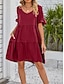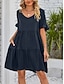 Naisten Mini mekko Rento mekko Puuvillamekko Kesämekko Tyylikäs Muoti Moderni ulko- Loma Bile Loose Fit Tavallinen Lyhythihainen V kaula-aukko Musta Valkoinen Armeijan vihreä Viininpunainen Kesä Kevät