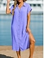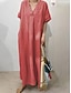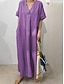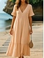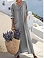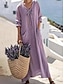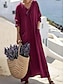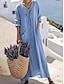 Naisten Maksimekko Cotton Blend Väljä mekko Rento mekko Puuvillamekko Muoti Moderni Päivittäin Viikonloppu Loose Fit Tavallinen Lyhythihainen V kaula-aukko Sininen Rubiini Kameli Purppura Kesä Kevät