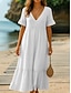 Naisten Midimekko Cotton Blend Väljä mekko Valkoinen mekko Rento mekko Muoti Perus Vapaa-aika Päivittäin ulko- Loma Loose Fit Tavallinen Lyhythihainen V kaula-aukko Sininen Musta Valkoinen Purppura
