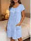 Naisten Polvipituinen mekko Cotton Blend Rento mekko Puuvillamekko Tpaitamekko Muoti Moderni Päivittäin Loma Bile Loose Fit Tavallinen Lyhythihainen Tiukka pyöreä kaula-aukko Sininen Valkoinen