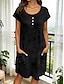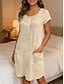 Naisten midimekko, puuvillamekko, kesämekko, rento, päivittäinen normaali istuvuus, yksivärinen, lyhythihainen, pyöreä pääntie, musta, ruskea, aprikoosi, kesä