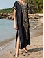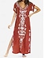 Naisten Midimekko Boho-mekko Vintage mekko Rento mekko Puuvillamekko Tyylikäs Vintage Muoti Päivittäin ulko- Loma Loose Fit Kuvitettu Lyhythihainen V kaula-aukko Musta Valkoinen Viininpunainen