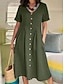 Naisten Midimekko 100% Cotton Paitamekko Puuvillamekko Tyylikäs Muoti Moderni Päivittäin ulko- Loma Normaali Tavallinen Lyhythihainen V kaula-aukko Sininen Musta Valkoinen Armeijan vihreä Kesä Kevät