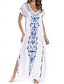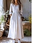 Naisten Maksimekko Valkoinen mekko Rento mekko Puuvillamekko A linjainen mekko Tyylikäs Muoti Moderni ulko- Loma Bile Normaali Tavallinen Pitkähihainen V kaula-aukko Valkoinen Kesä Kevät