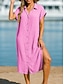 Naisten midimekko puuvillainen paitamekko pitkähihainen mekko vapaa-ajan mekko muoti moderni päivittäin viikonloppu väljä istuvuus yksivärinen lyhythihainen paitakaulus sininen pinkki vaaleanvioletti