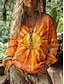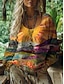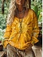 Naisten Boho T-paita T-paita Painettu Kuvitettu Vintage Etninen Vapaa-aika Pitkähihainen V kaula-aukko Tavalliset topit Päivittäin Viikonloppu Lomavaatteet Keltainen Rubiini Oranssi Apila Sateenkaari