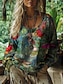 Naisten Paita Boho paita Kukka Kuvitettu Tyylikäs Böömi Loma Pitkähihainen V kaula-aukko Tavalliset topit Kausaliteetti Päivittäin Pyhäpäivä Punastuvan vaaleanpunainen Purppura Oranssi Apila Kes